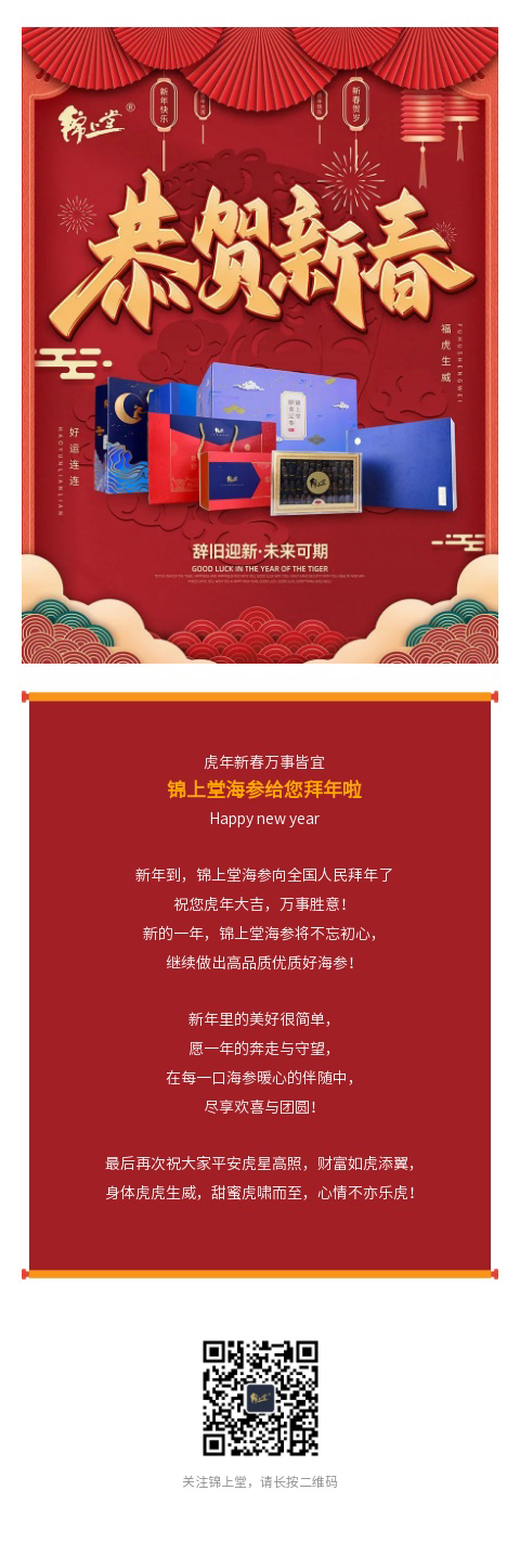 金虎臨門,鴻運加身丨錦上堂海參給您拜年啦!